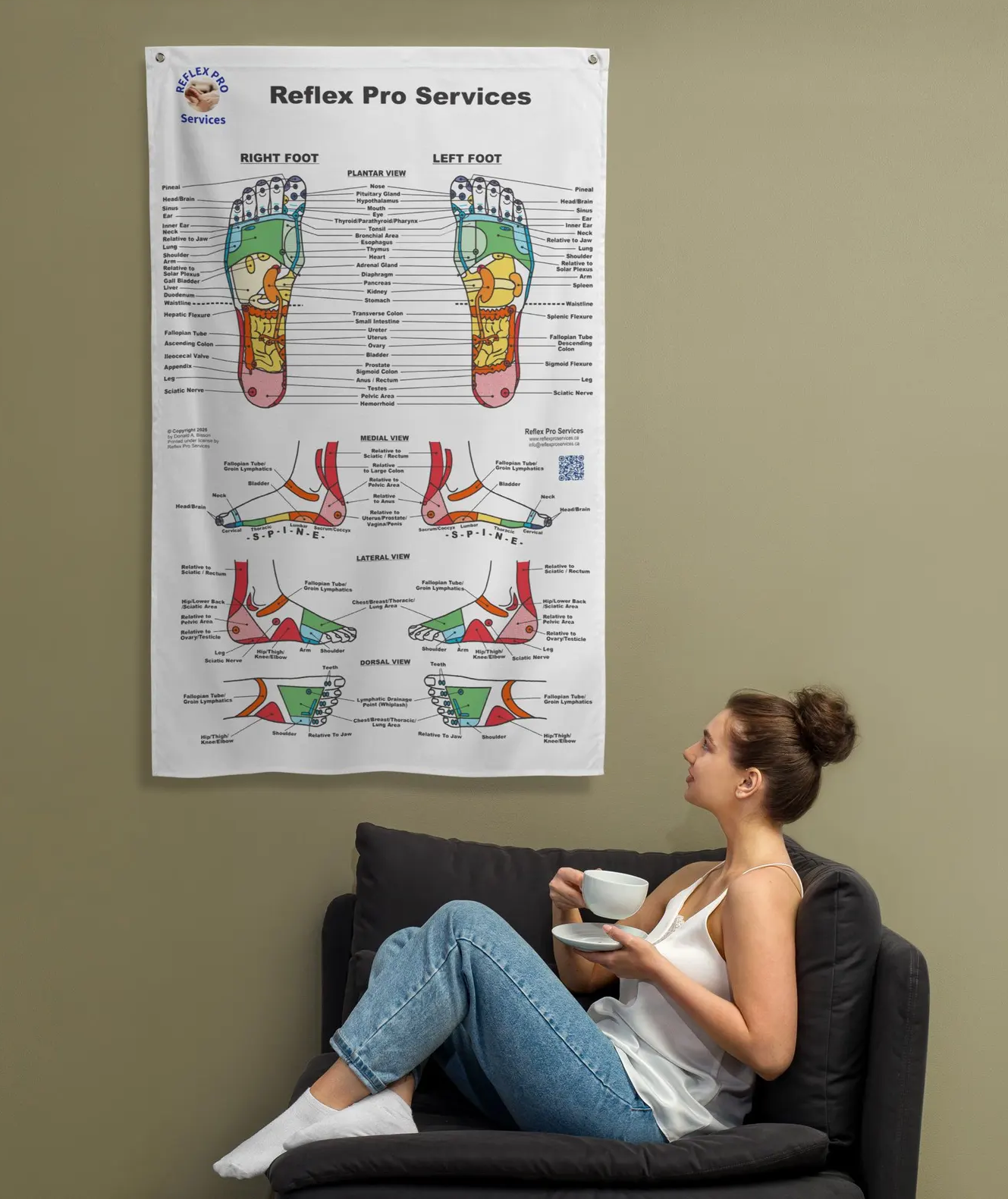 This large-format flag transforms any wall into an eye-catching educational feature—ideal for teaching, décor, or creating a professional atmosphere in your reflexology practice.