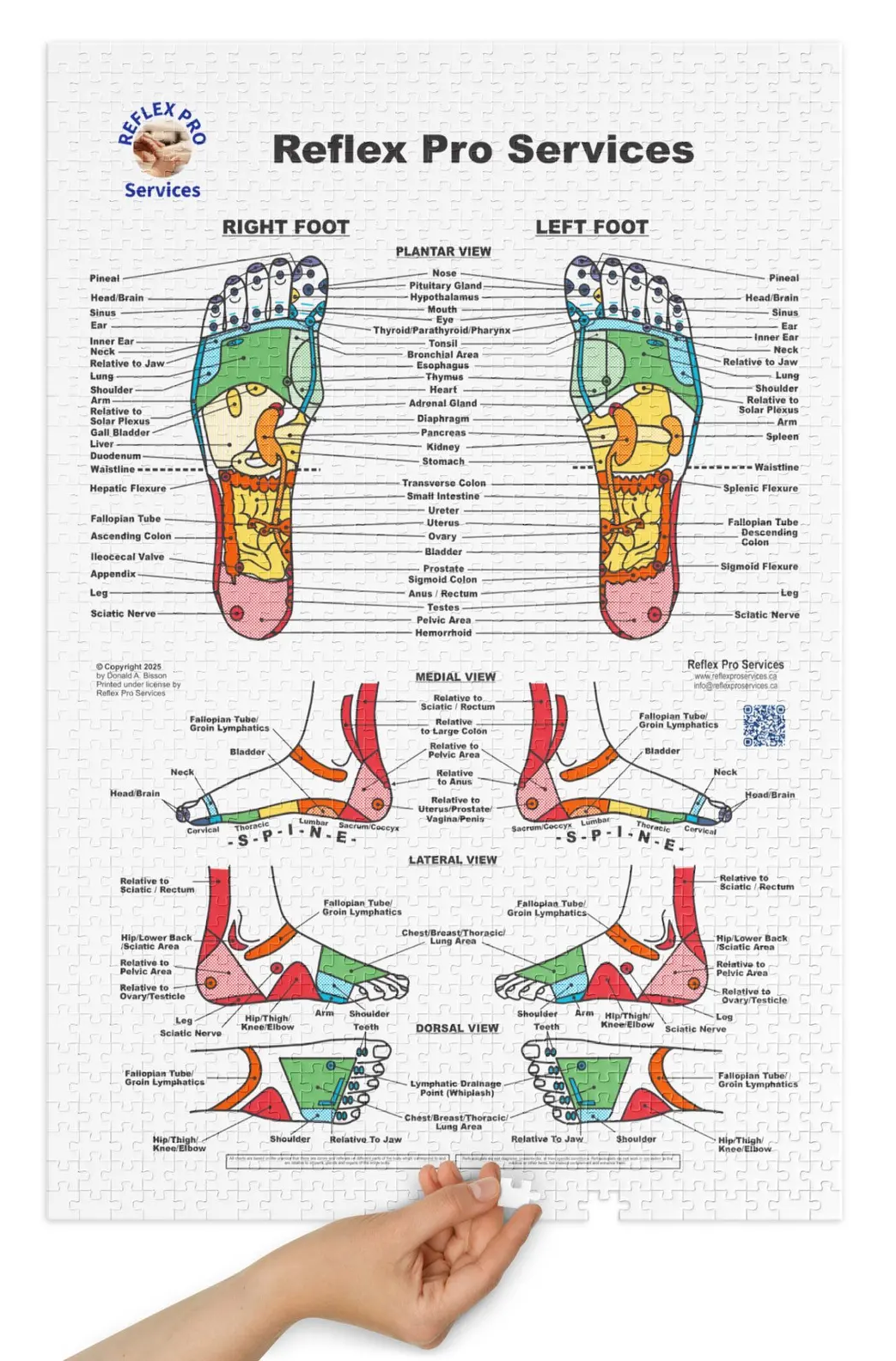 Transform your reflexology learning experience with this one-of-a-kind jigsaw puzzle featuring a professionally illustrated Reflexology Foot Chart with keepsake tin.